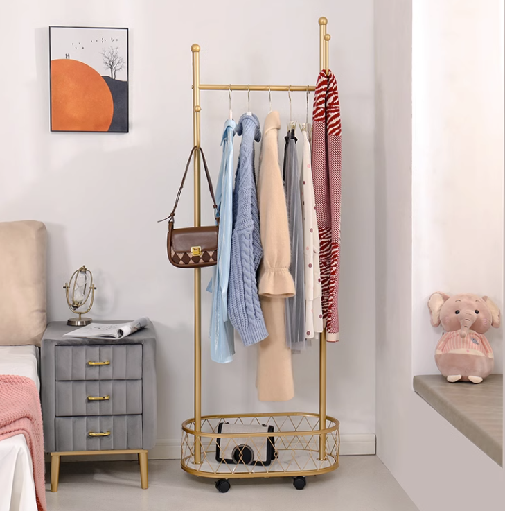 • Product description: Clothes Hanger Rolling Cart Coat Rack Double Pole Hanger Storage Clothing Drying Racks Standing Trolley Coat Rack